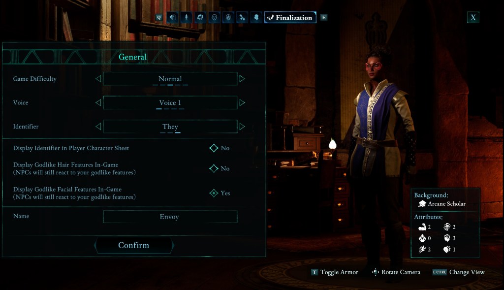 Like I said, most times, these are just drop-down menus you can breeze through when creating your character. Sure, you might be annoyed at all the hairstyles you need to go through, and if a game doesn’t have a great preview system, it might take you a while to create your character. But after you confirm all your options and you’re going through that intro cutscenes, all those choices are now interalized. I have yet to run into a game with this feature that has gameplay or dialogue around soldifying your choice. No character asks you your preferred pronouns, and you never have to correct anyone. At this point and time, it’s a line item on a character sheet. I also feel that dialogue may be moot for this feature as well because maybe developers lean towards gender neutral dialogue, so they have to record less. So all this is to say it’s one tiny option that is never brought up again. Same with your choice in skin tone or hairstyle. If we look at Avowed, the only real character creation option that plays into the game is if you pick to let your godlike features be addressed. So there’s a chance character will freak out that your face is just a piece of bark from a tree.
