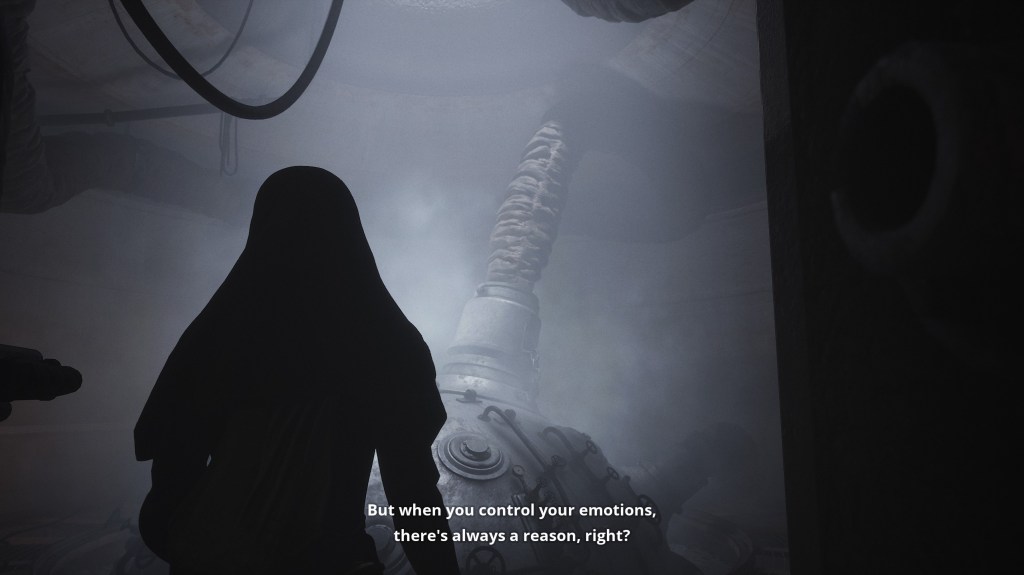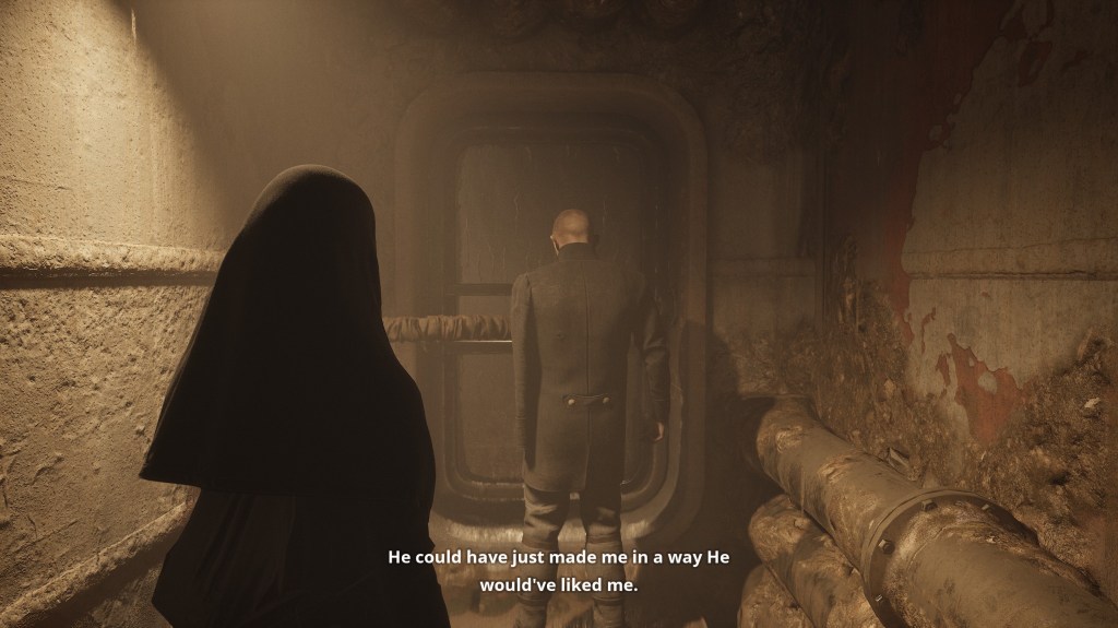 Indika herself is interesting as she is somewhat of a unreliable character. It’s not like she can hide her desires or intentions, you as the player get to see the real truth. But she definitely tries to make herself seem more heroic than she actually is. There’s a scene where Indika is about see violence unfold and she originally plans to do nothing. But due to some story beats, she ends up accidentally getting involved, she doesn’t save the day as she’s more of an accidental distraction. But, crucially, how does she portray this situation to an outside observer? Well, she’s the hero of course, she stepped in when no one else would! But you as the player see the full truth, there’s just nothing you can do about it, you’re just along for the ride.
